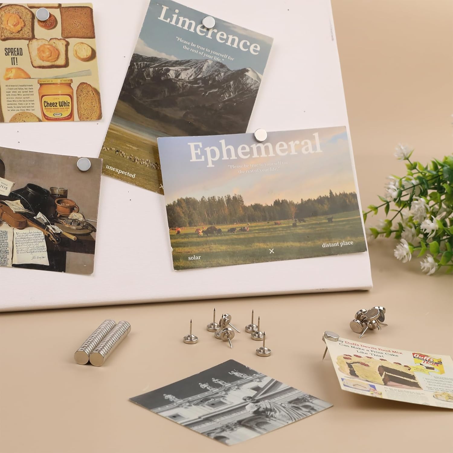 How to use: Place the photos, notes and other items that need to be fixed flatly, and then adsorb the magnetic thumbtacks on the cork board or magnetic bulletin board; if you want to fix thicker materials, you can first penetrate the material with the thumbtacks, and then adsorb them on the board.