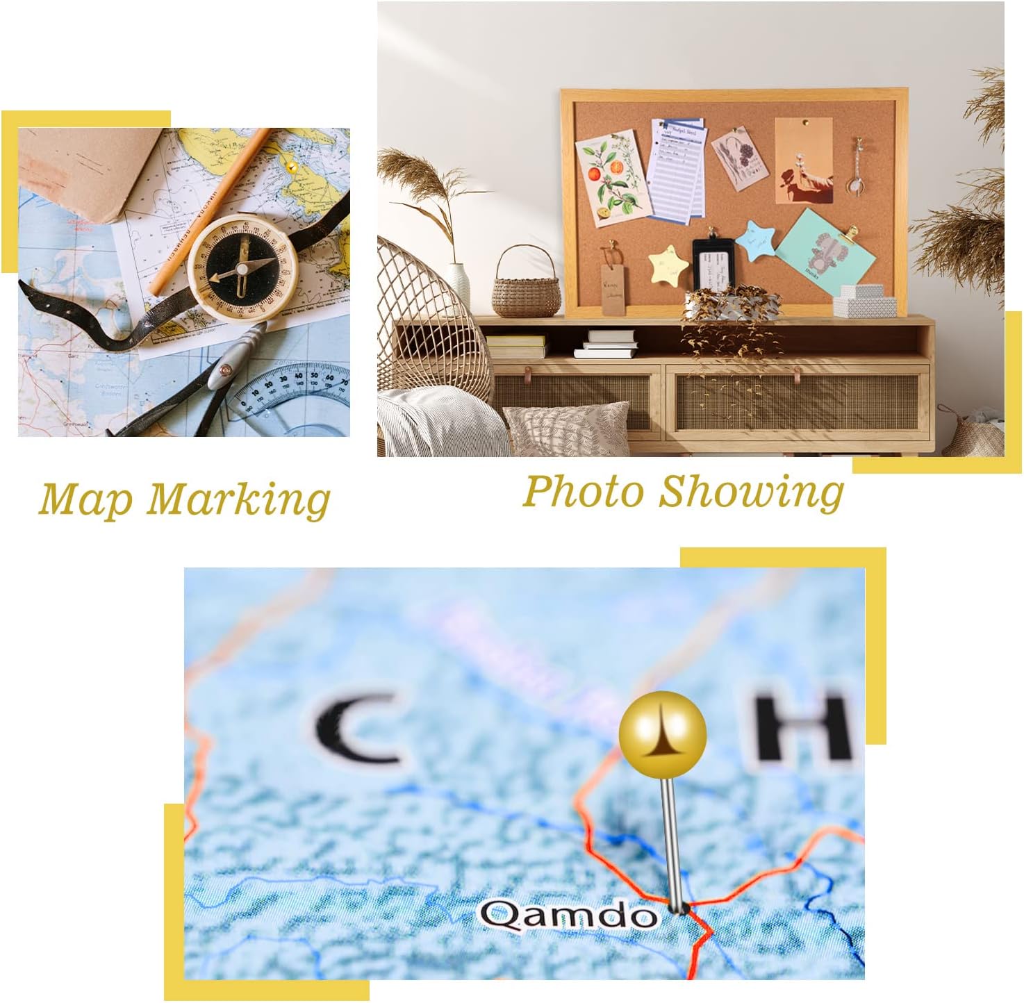 Gold appearance: The unified gold appearance design makes the whole set of thumbtacks look exquisite and high-end. Whether it is used in a formal office environment or a personalized home study decoration, it can be well integrated into it and enhance the overall beauty.